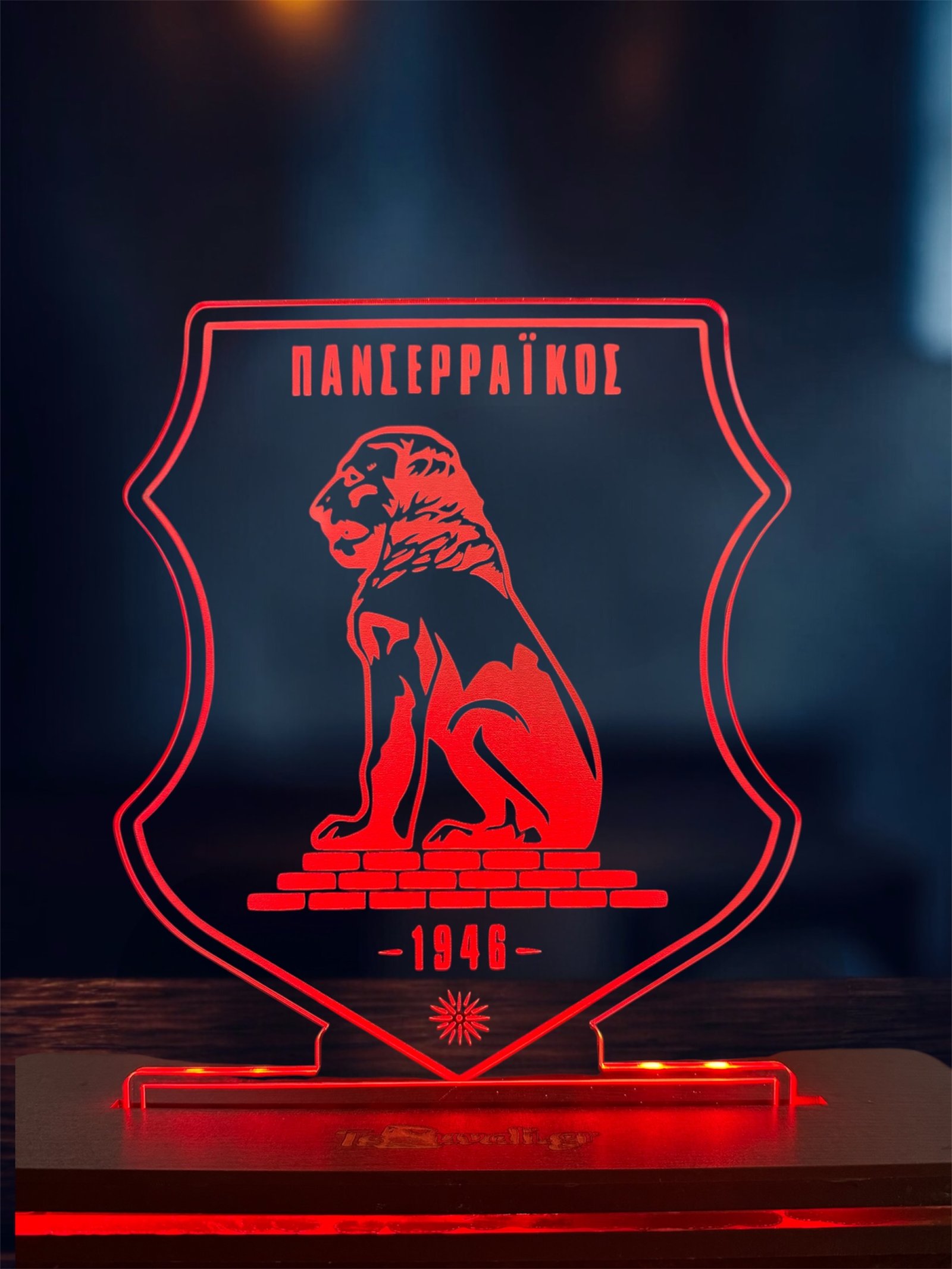 Χειροποίητο led διακοσμητικό φωτιστικό Πανσερραϊκός με την αγαπημένη σας ομάδα χαραγμένη όπως στην καρδιά σας έτσι και στον χώρο σας!
